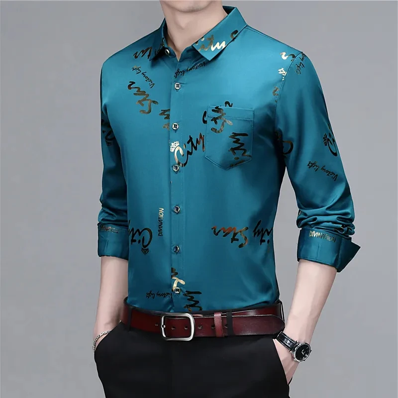 Camisa Satinada con Estampados Hombre