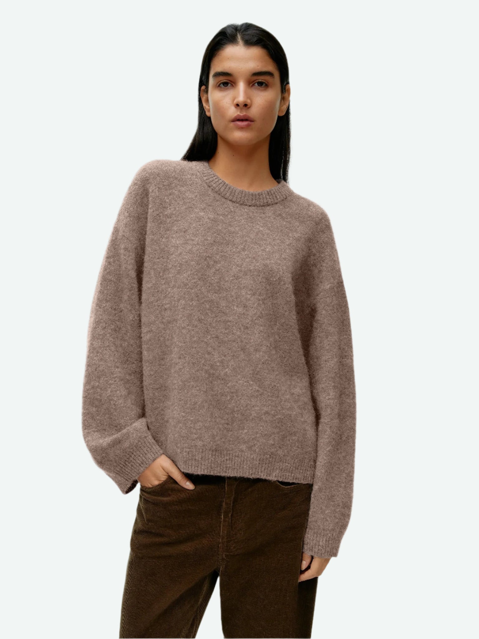 Abrigate con estilo con este suéter tejido de diseño oversize. Su cuello redondo clásico y mangas tipo farol le dan un toque moderno y femenino, ideal para looks casuales y cómodos. Perfecto para los días fríos gracias a su textura gruesa y suave.