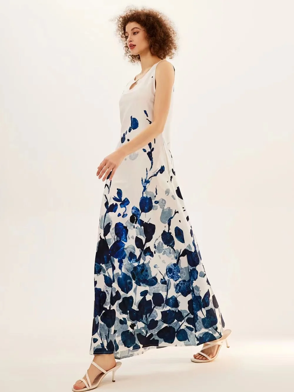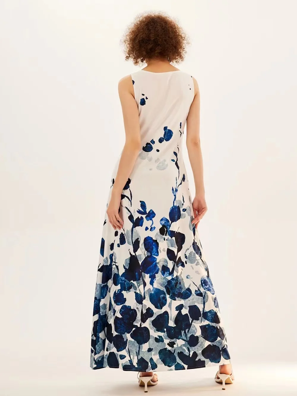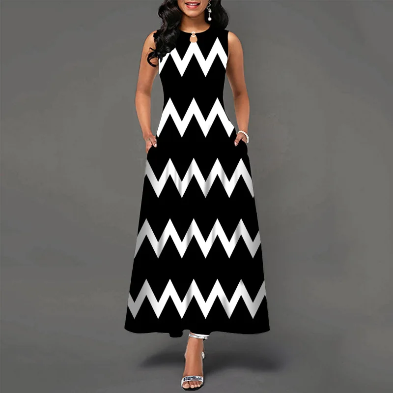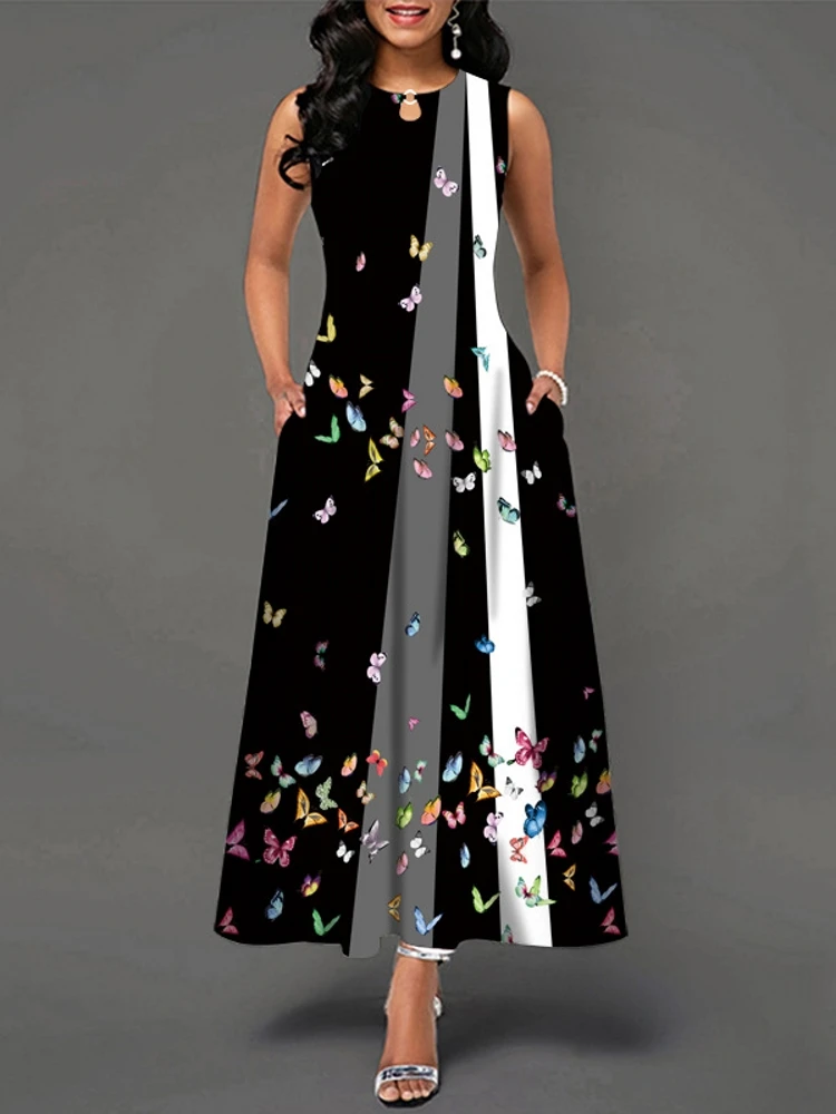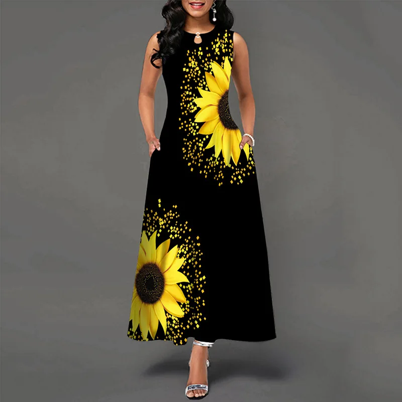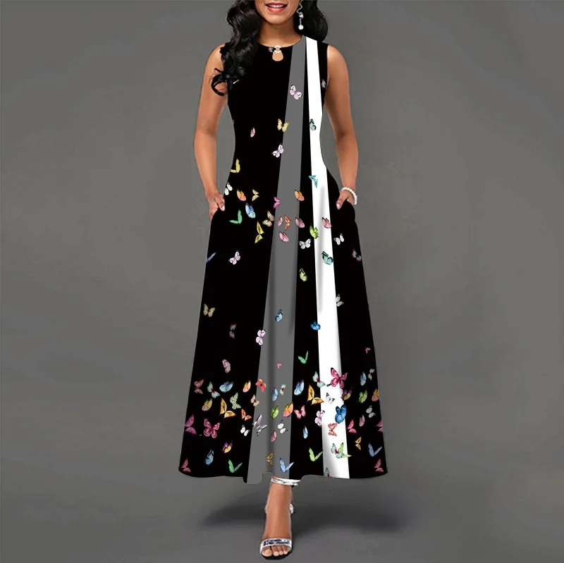 jf23 New Spring/Summer Casual Sleeveless Long Dress Women's V-Neck Printed Dresses Swing Bohemian Retro Dresses A-LINE