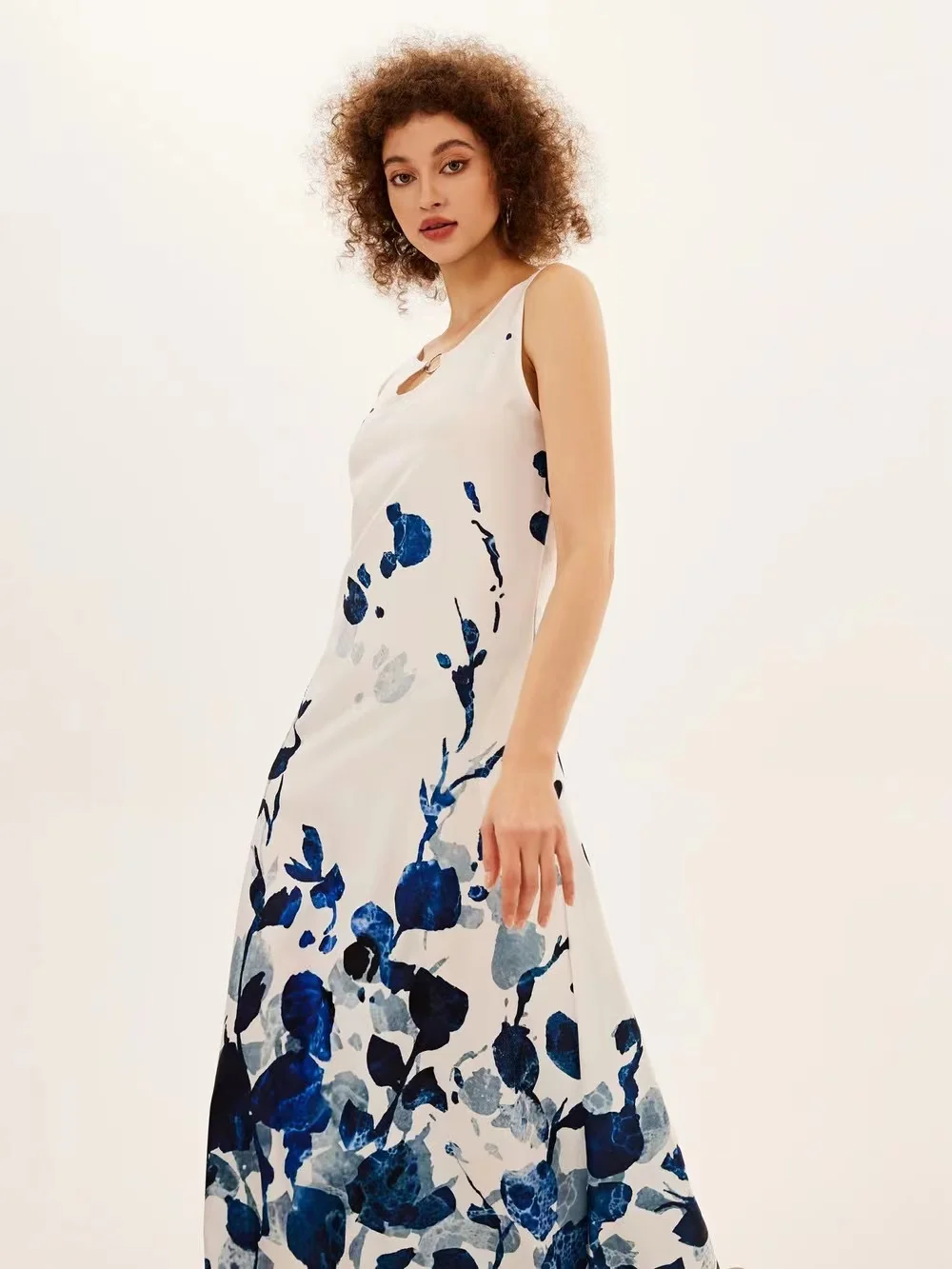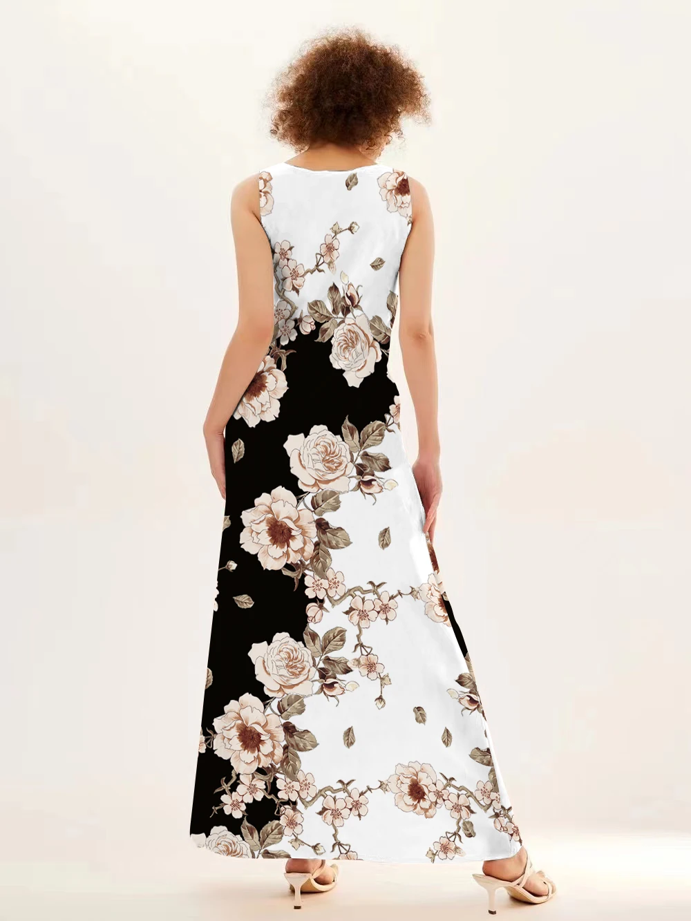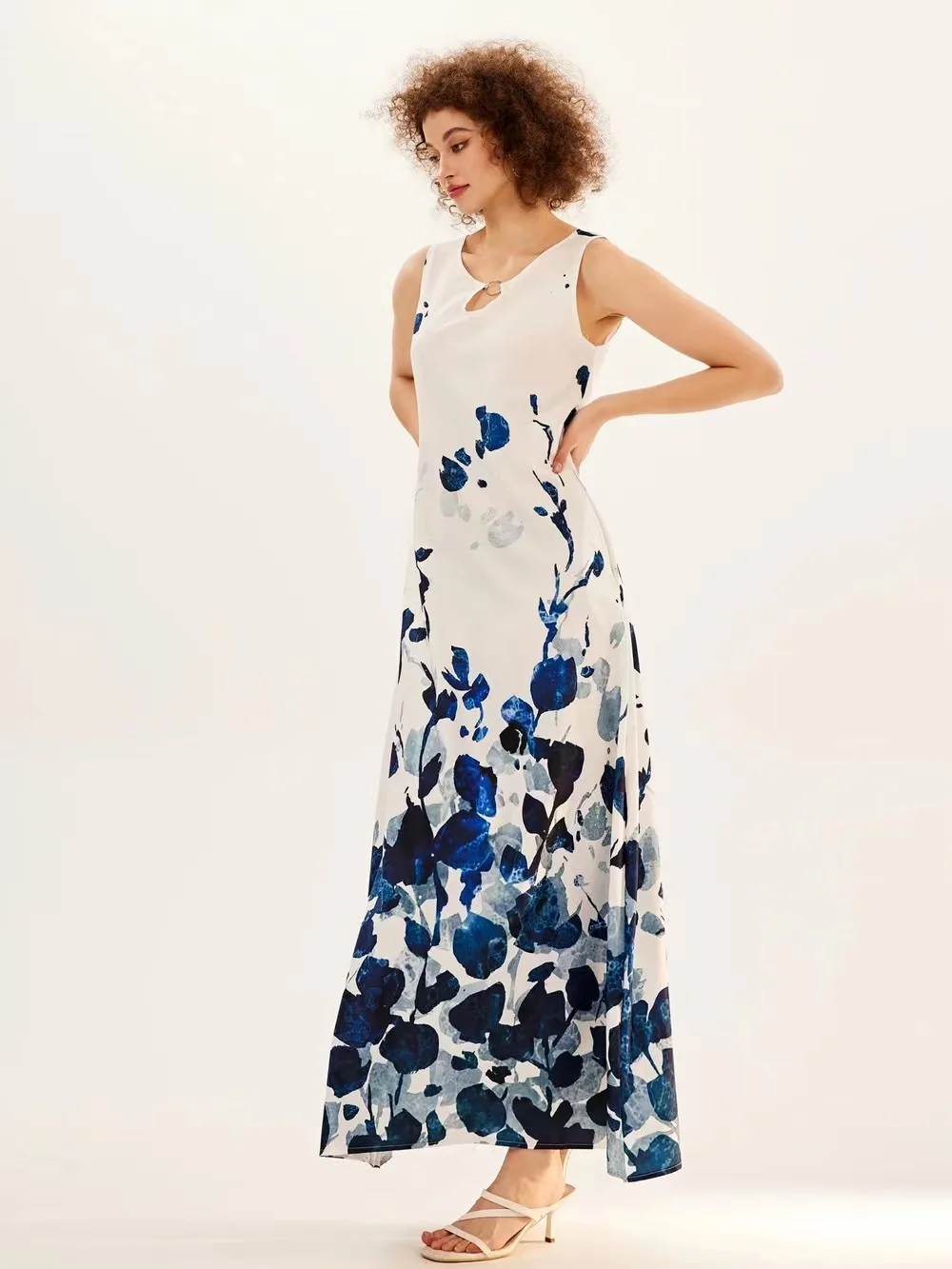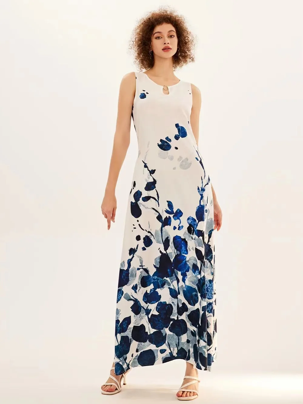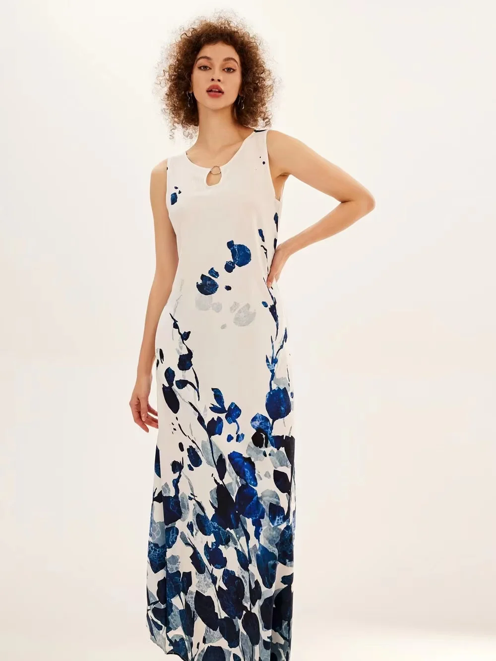 jf23 New Spring/Summer Casual Sleeveless Long Dress Women's V-Neck Printed Dresses Swing Bohemian Retro Dresses A-LINE